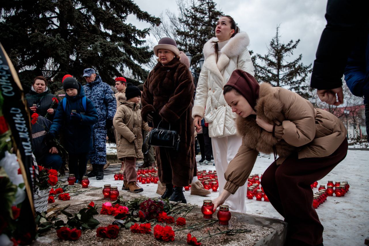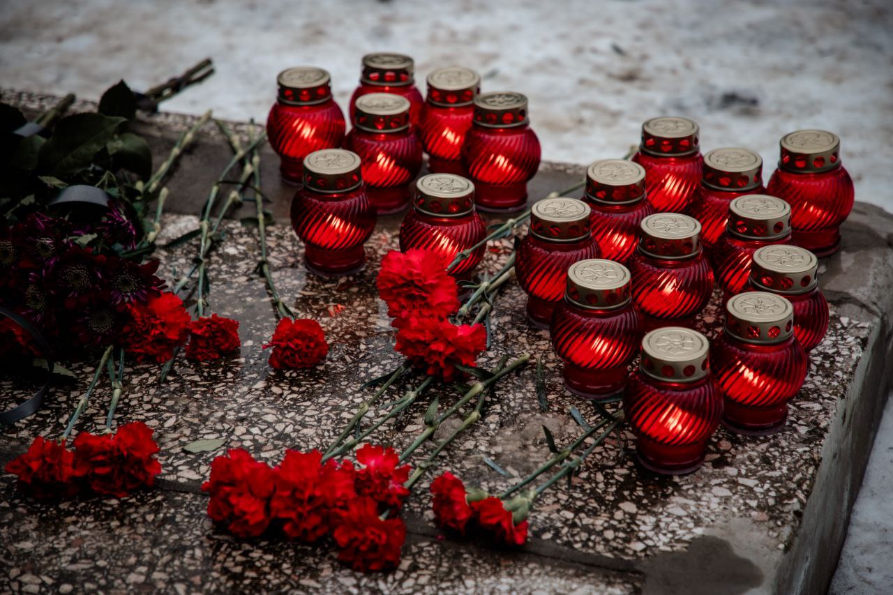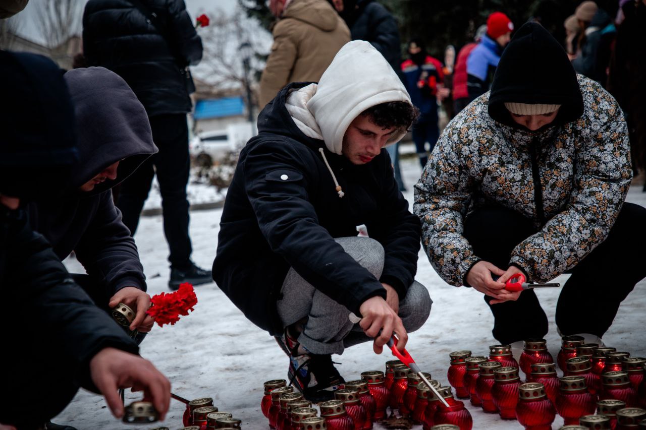 У памятника «Скорбящей матери» в Геническе собрались жители, активисты и юнармейцы. В дни траура они возложили цветы и игрушки, зажгли лампады и почтили минутой молчания мирных жителей, погибших в результате удара беспилотников по селу Хорлы.