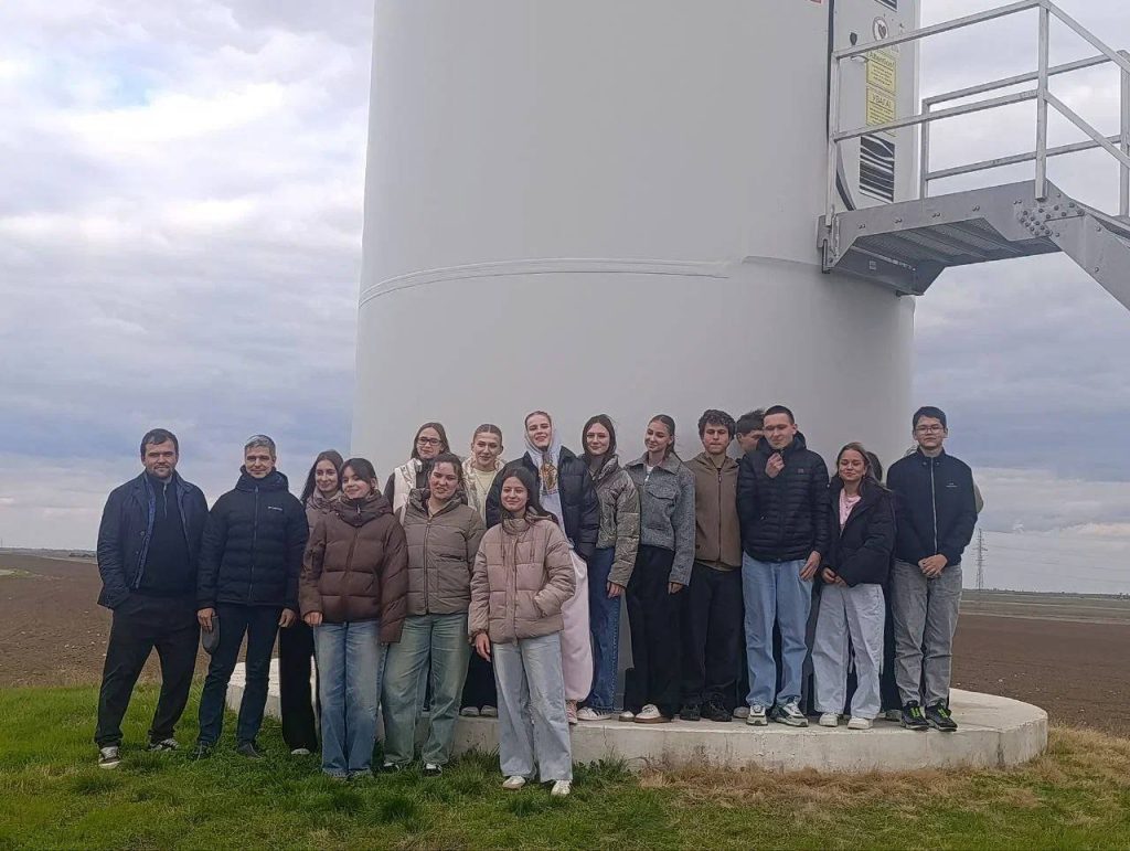 Экскурсия стала настоящим путешествием в будущее: ребятам рассказали, что электростанция была открыта в 2019 году и сегодня включает 36 мощных ветрогенераторов. Высота каждого достигает 115 метров, а длина лопастей — до 65 метров. С вершины такого «гиганта» можно увидеть десятки километров окрестностей.