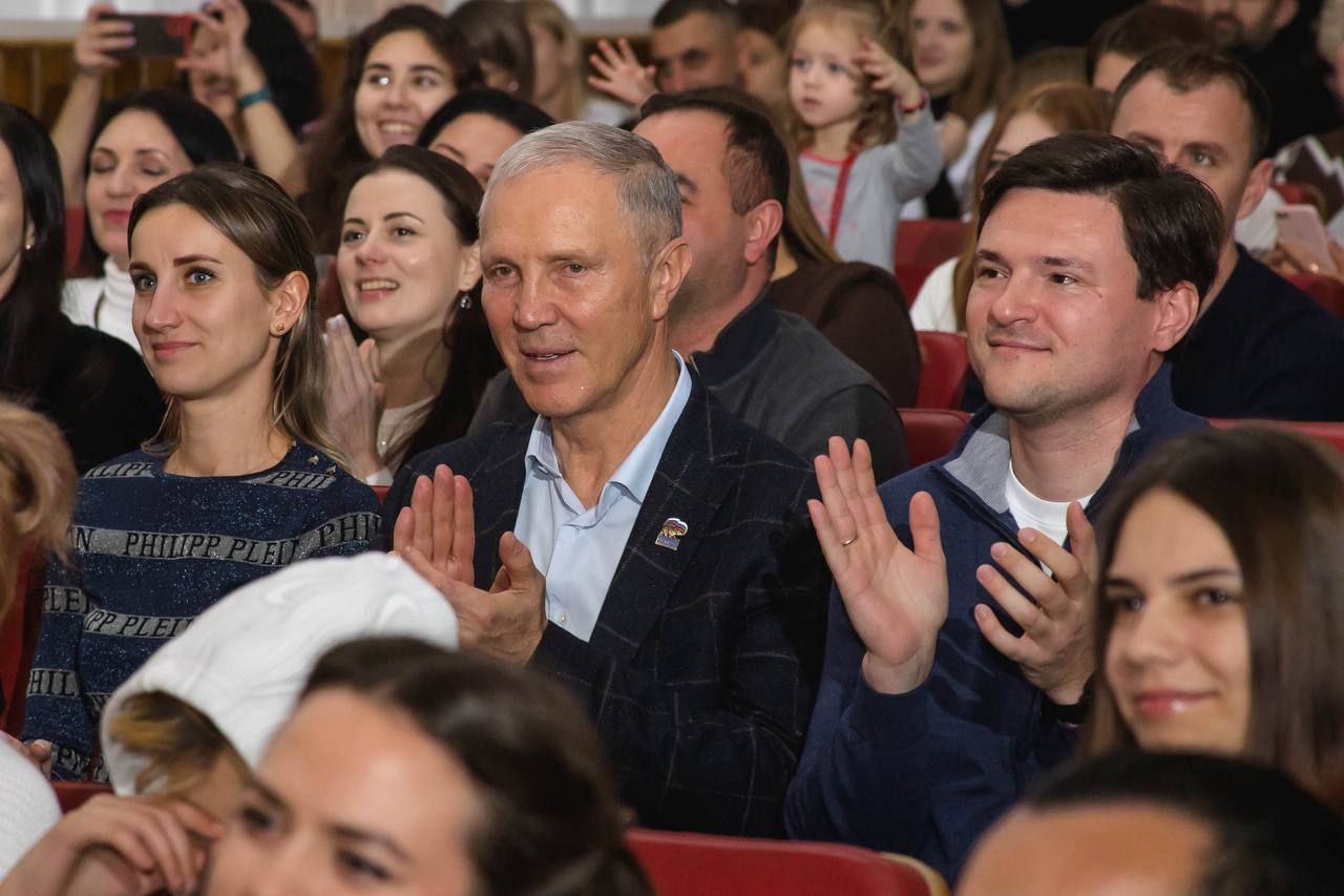 «Я очень рад видеть, что молодёжь Херсонской области, играющая в КВН, видит мир таким прекрасным, радостным и ещё больше озаряет его своими шутками», — обратился к участникам и зрителям Владимир Сальдо.