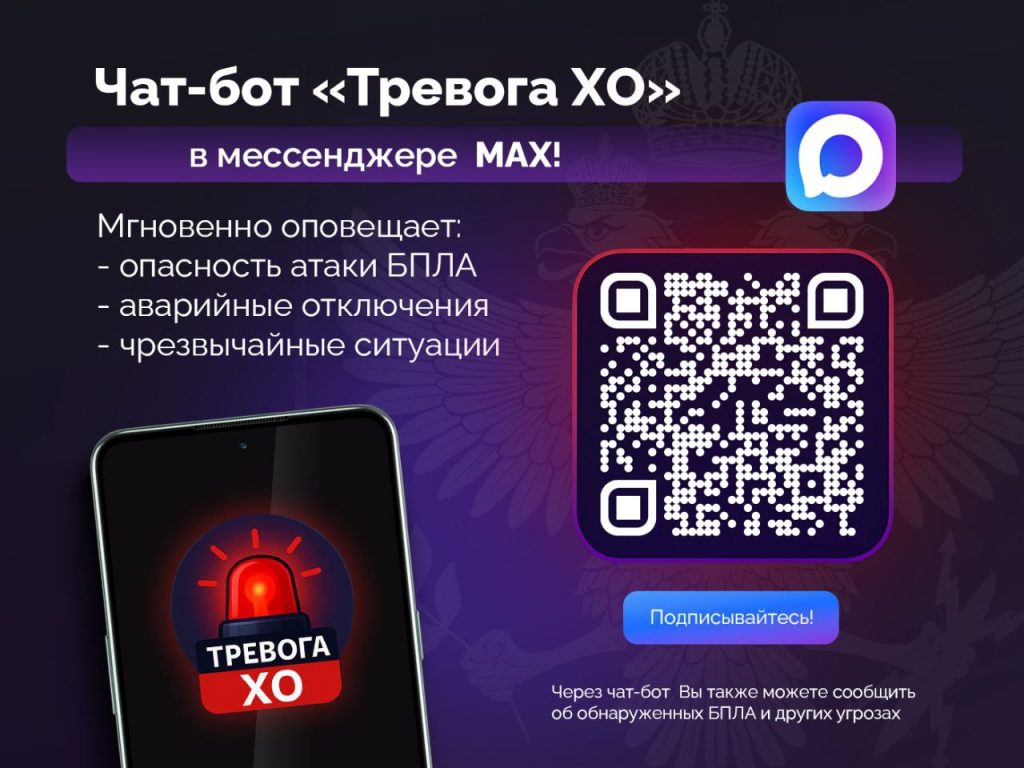 В мессенджере MAX начал работу специализированный чат-бот «Тревога ХО», предназначенный для жителей Херсонской области. Новый цифровой сервис обеспечивает быстрый доступ к актуальной информации о выявленных воздушных угрозах, а также предоставляет гражданам возможность самостоятельно передавать сообщения о замеченных беспилотниках и иных потенциально опасных объектах.